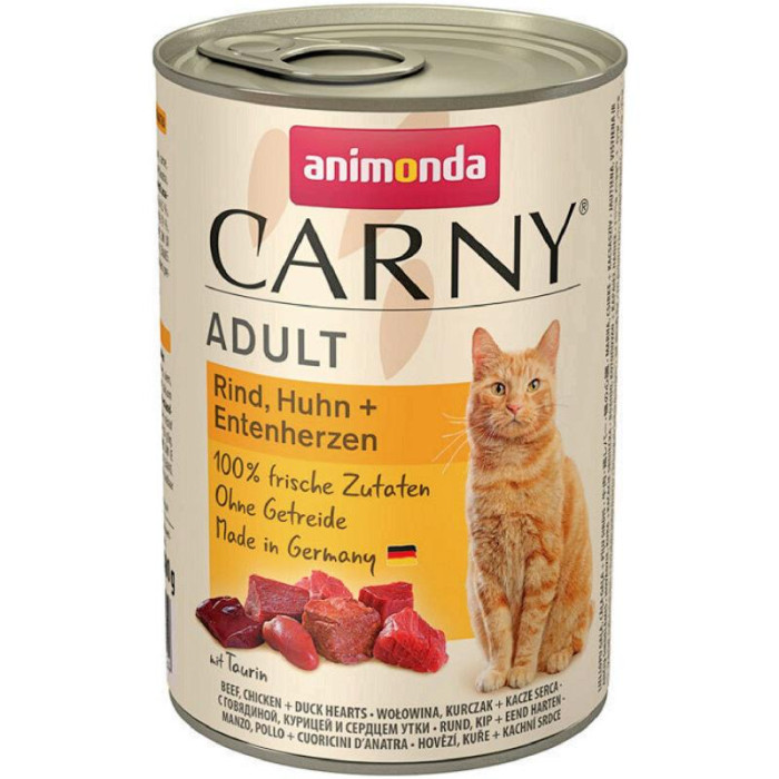 Корм Carny Adult Animonda 400 г для дорослих котів з яловичиною куркою і качиними серцями