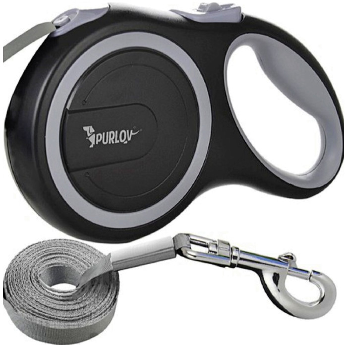 Повідець-рулетка Purlov 5 м/15 кг сіра