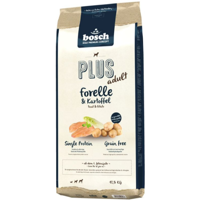 Корм Plus Trout & Potato Bosch 12.5 кг для дорослих собак з фореллю і картоплею